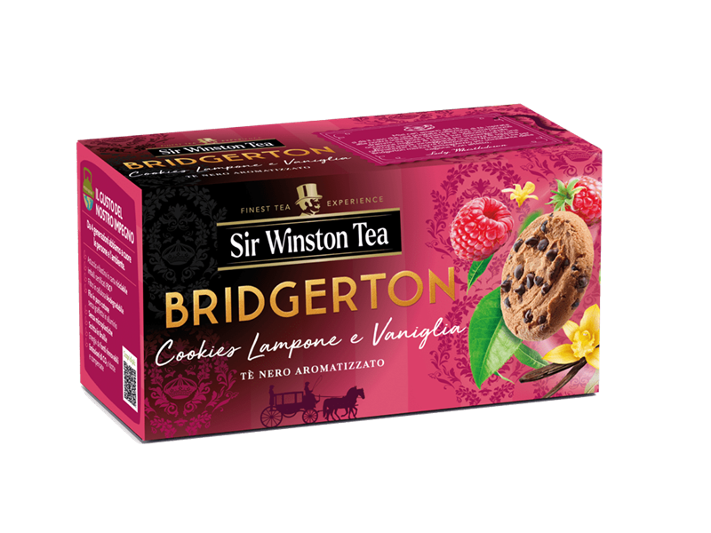 Il tè nero Cookies Lampone Vaniglia, una novità ispirata all'eleganza senza tempo di Bridgerton: un intreccio raffinato di note golose e fruttate, dove la dolcezza di cookies, lampone e vaniglia si intreccia con il carattere deciso delle foglie di tè.